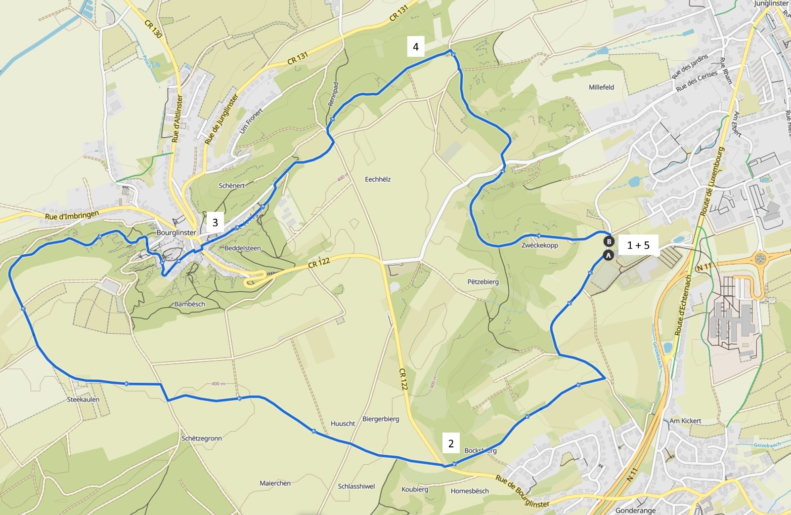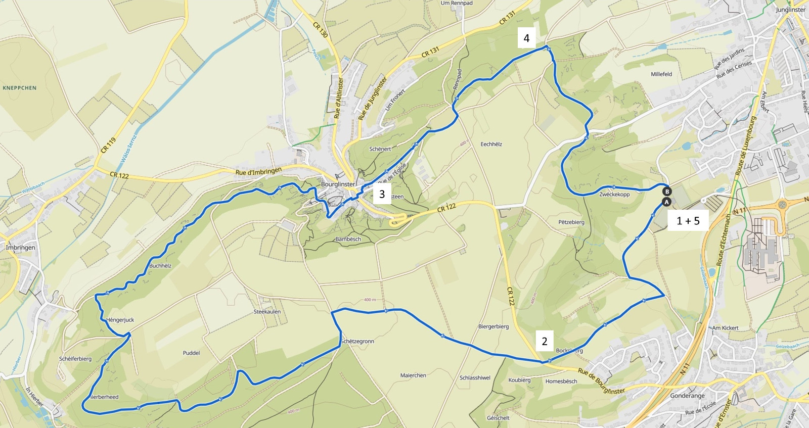 E flotten Trëppeltour mat 5 Statiounen wou dir bei engem passende Maufel ausgewielte Wäiner schmaachen an duerno zu gudde Konditiounen bestelle kënnt.